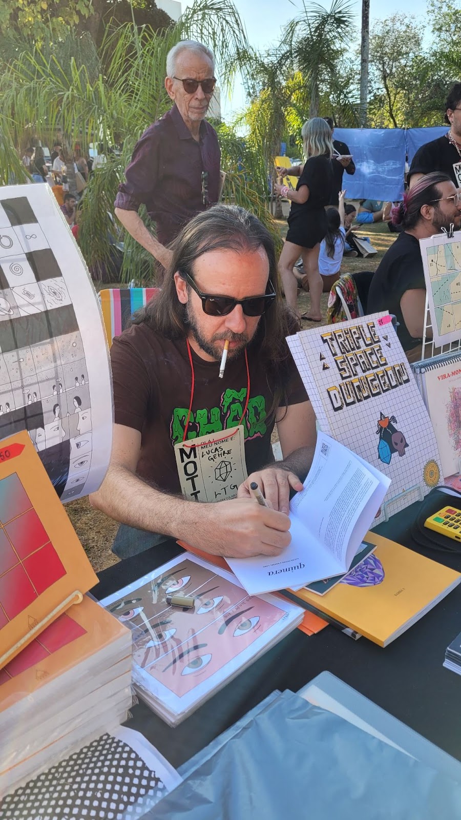 Co-criador de Quimera, artista, designer, diretor de arte e roteirista, publica quadrinhos desde 2002. Seu trabalho mais conhecido atualmente é a série de tirinhas Quadradinhas, com mais de 80k seguidores. Trabalha com cinema desde 2007, e seus projetos mais recentes incluem o roteiro e a direção de arte do curta Xarpi (2024) e do longa Mapas, ambos dirigidos por Rafael Lobo. Interessado nos limites entre as palavras e as imagens, seja no impresso, no audiovisual ou no digital.