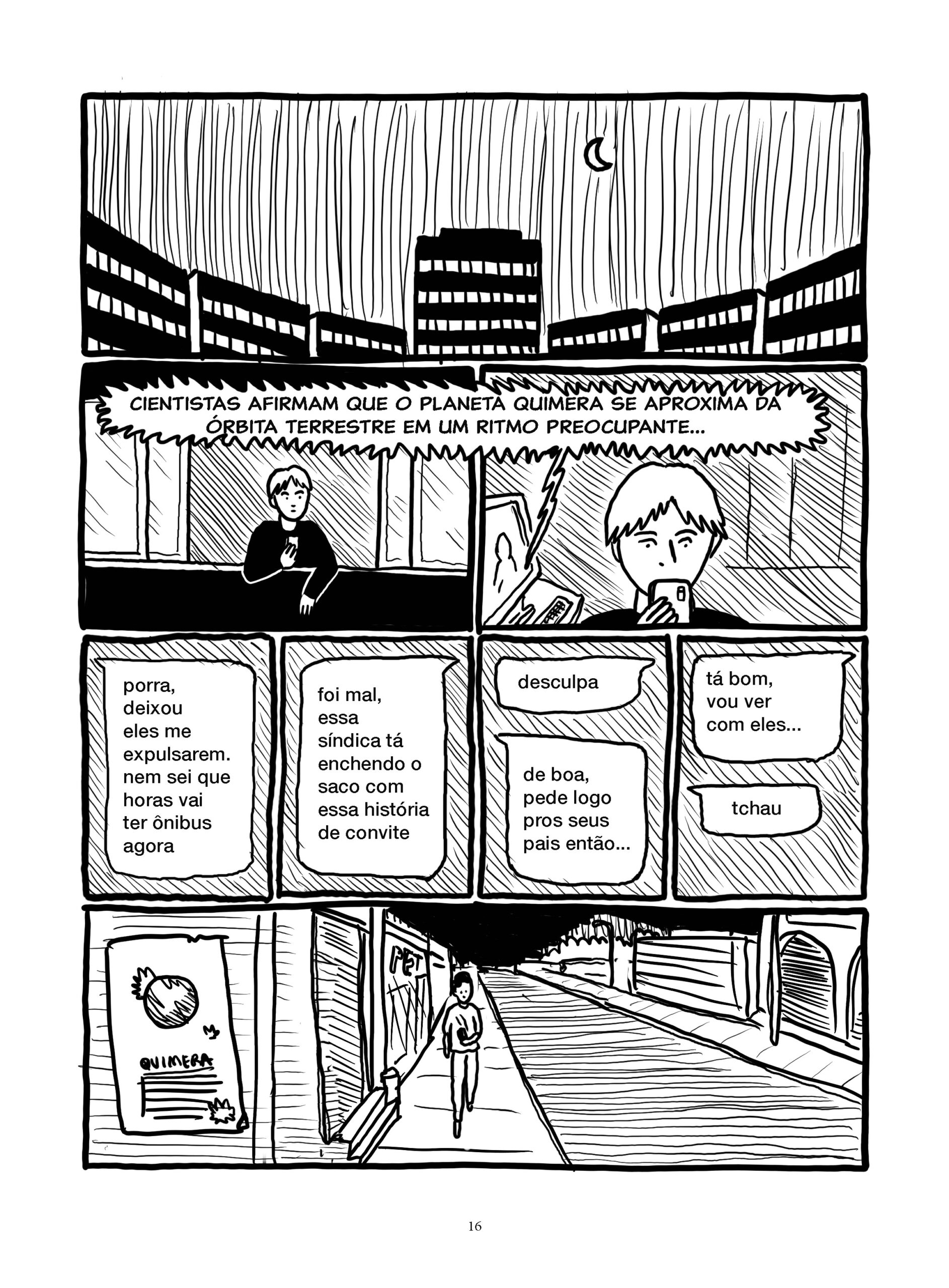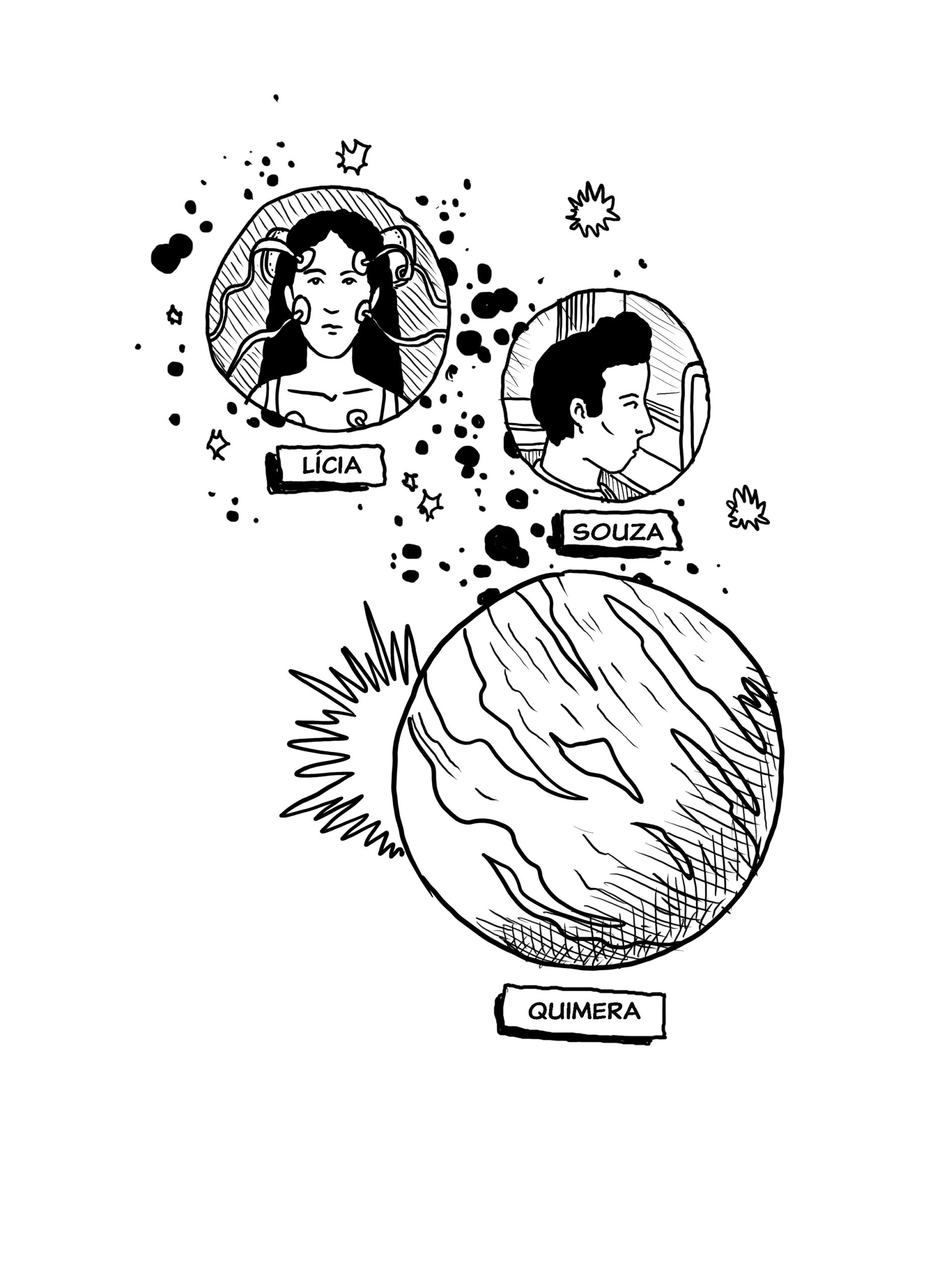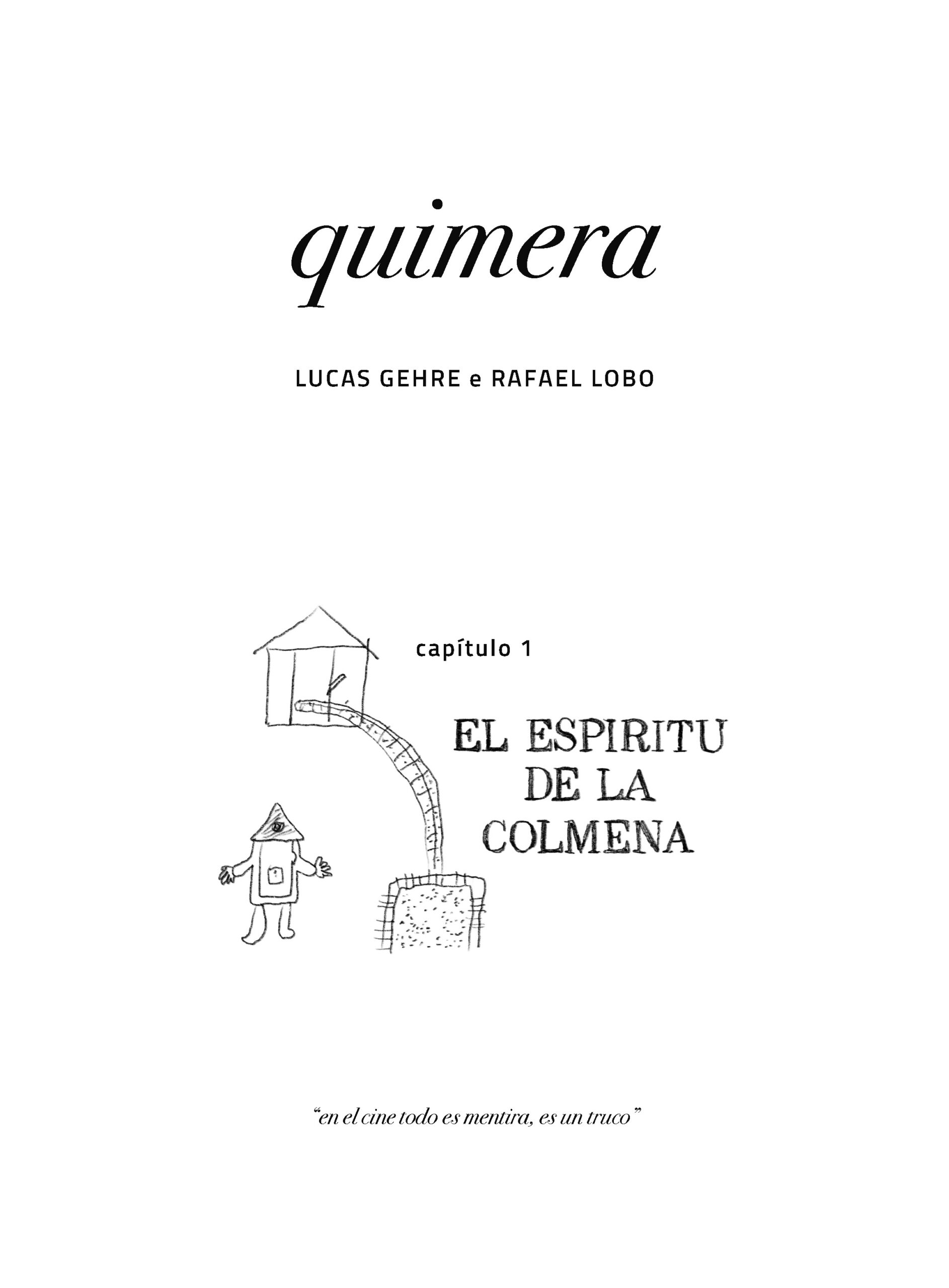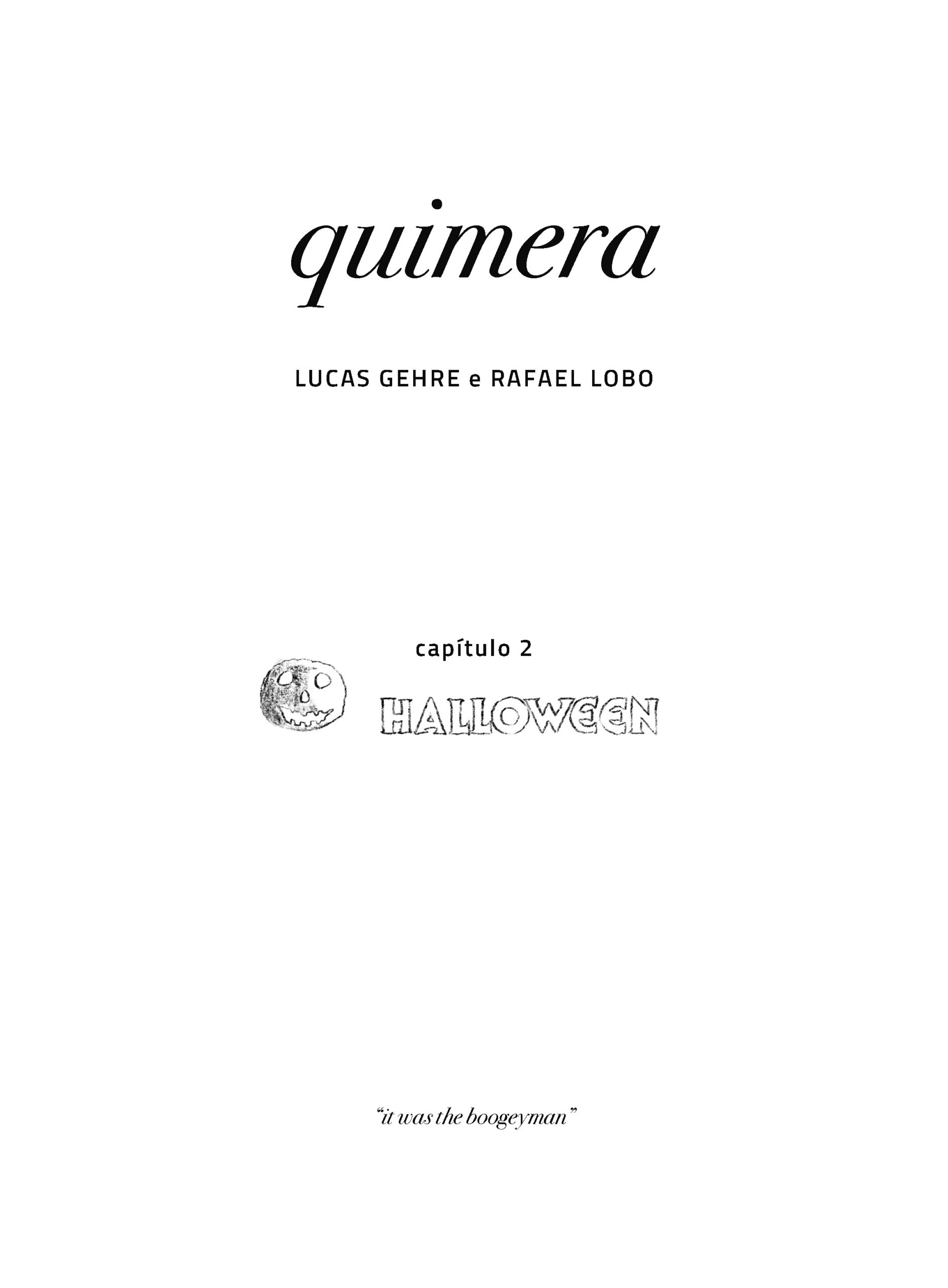 Os quadrinhos constituem a primeira versão da história, planejada para contar um grande arco de horror-cósmico. Desde 2024, Quimera vem sendo publicada de forma seriada, como os antigos gibis de banca. Com uma linguagem experimental, Quimera compõe uma reflexão profunda sobre quadrinhos, cinema e horror.