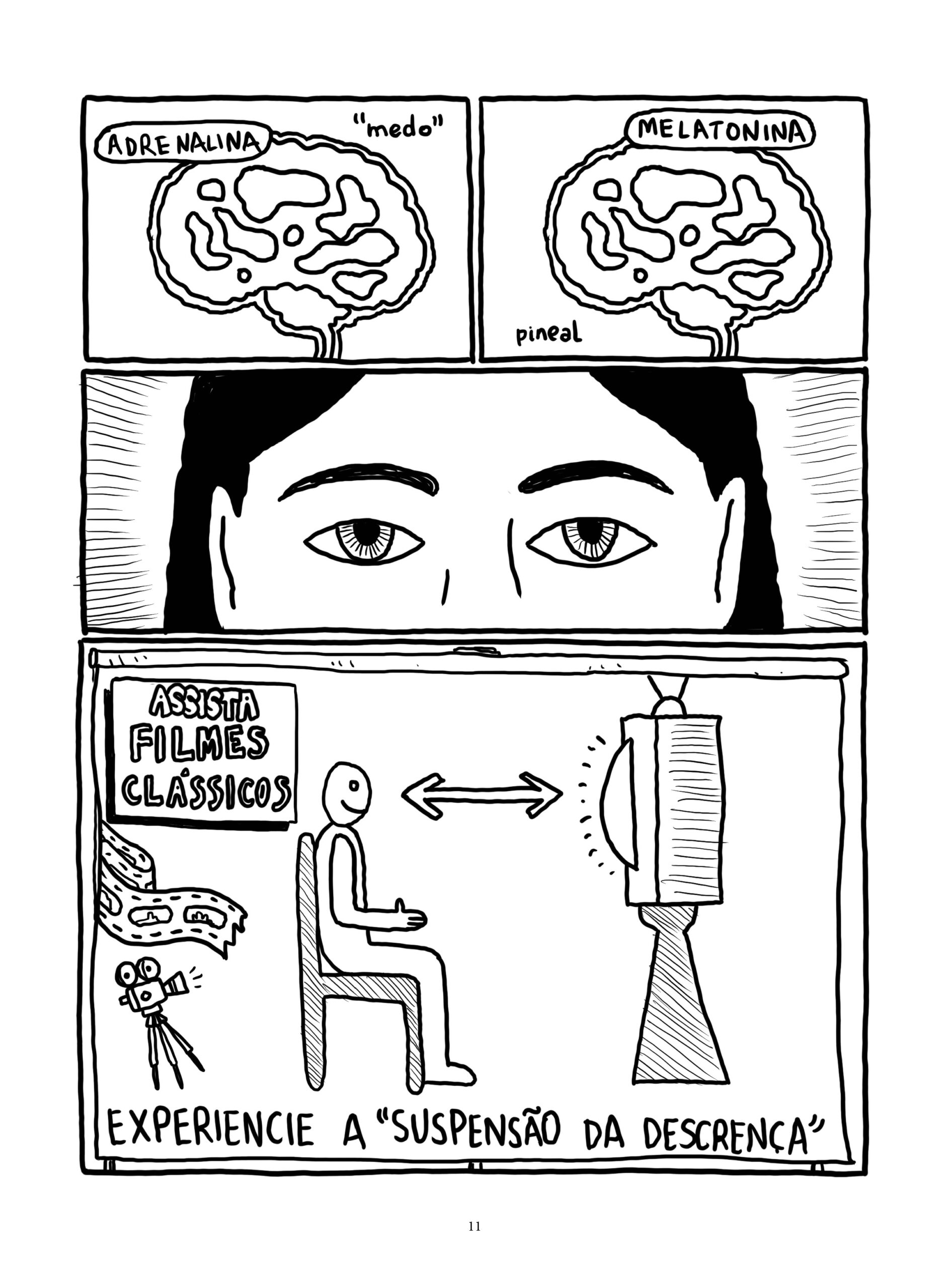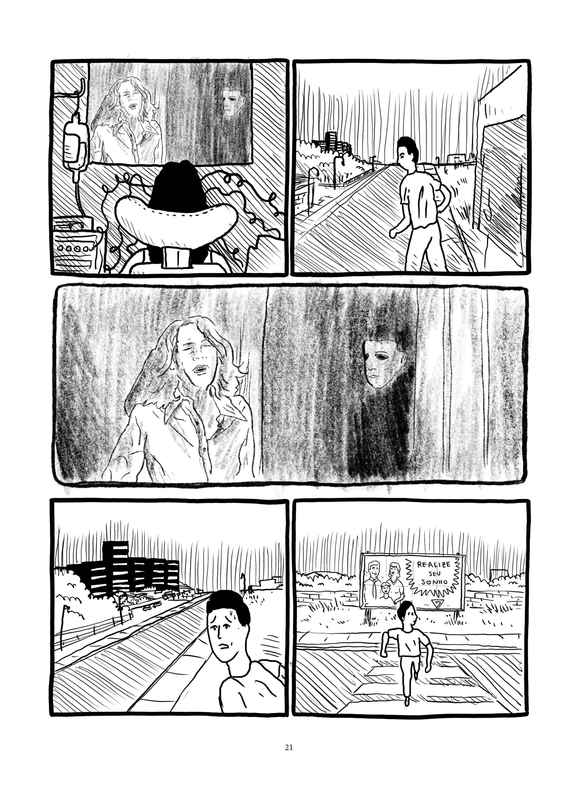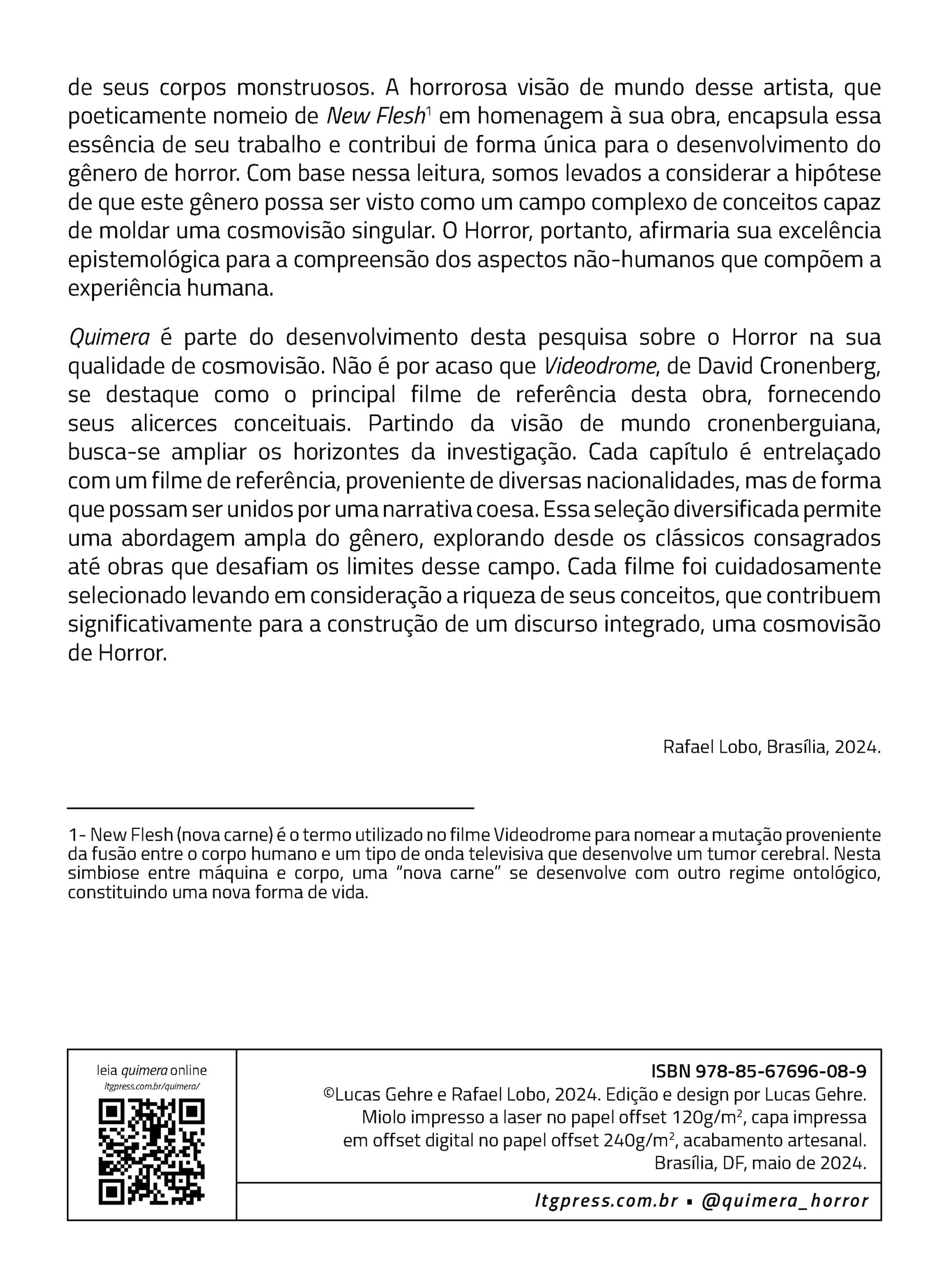 Cada episódio dos quadrinhos de Quimera se relaciona a um filme de horror, que também aparece dentro da história associado ao experimento científico de um jeito estranho e obscuro. As obras de referência contaminam a narrativa, o desenho e o ritmo, somando-se na história tecendo um discurso sobre o gênero do horror.